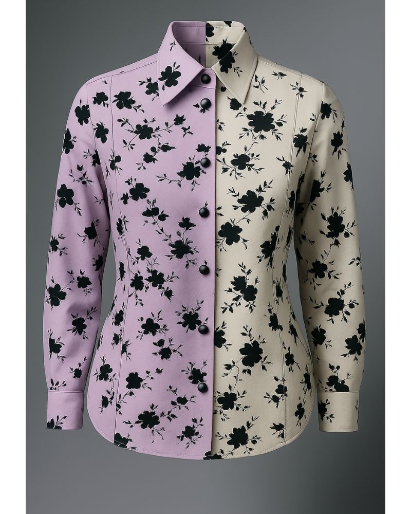 Camasa office in doua culori si imprimeu floral cu croiala clasica si maneci lungi