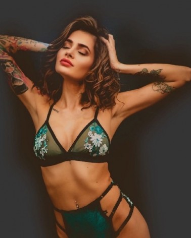 Acest set de lenjerie intimă este elegant și feminin, compus dintr-un sutien tip bralette realizat din tull brodat cu motive florale delicate și un chilot brazilian din catifea fină și tull brodat în același design floral. Sutienul tip bralette este fără armătură și are bretele subțiri reglabile, oferind confort maxim și o siluetă naturală. Chilotul brazilian este croit pentru a evidenția formele și are o dantelă fină la spate, creând un efect de transparență seducător. Setul este ideal pentru momentele în care dorești să te simți sexy și sofisticată, dar fără a compromite confortul.