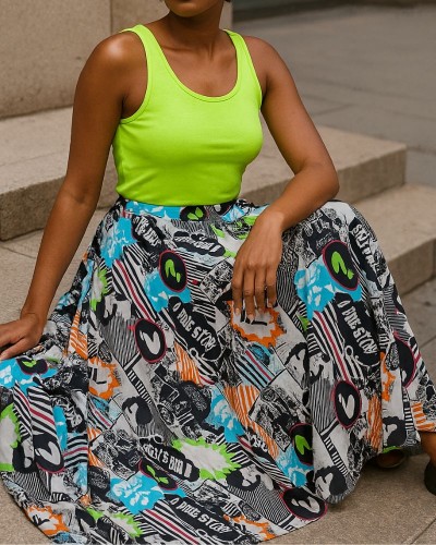 Indiferent de stilul tău personal, această fustă lungă din lycra cu imprimeu urban este o piesă vestimentară versatilă și de efect, care îți va completa ținuta și te va face să te simți încrezătoare și fermecătoare.
